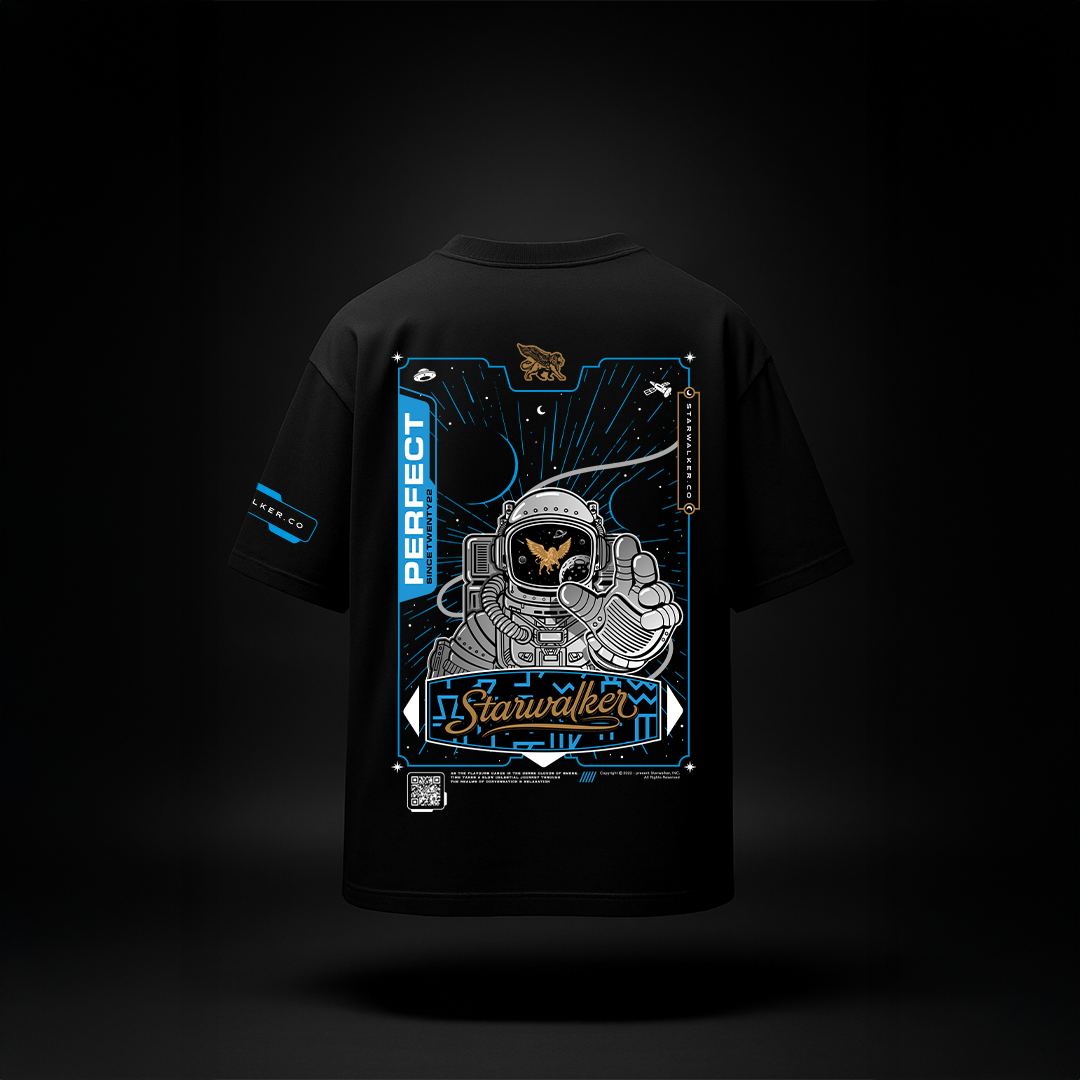 It's not just a Tee, it’s a statement. Featuring a bold astronaut graphic with that cosmic edge, it’s the kind of piece that's sleek, striking, and undeniably Starwalker.