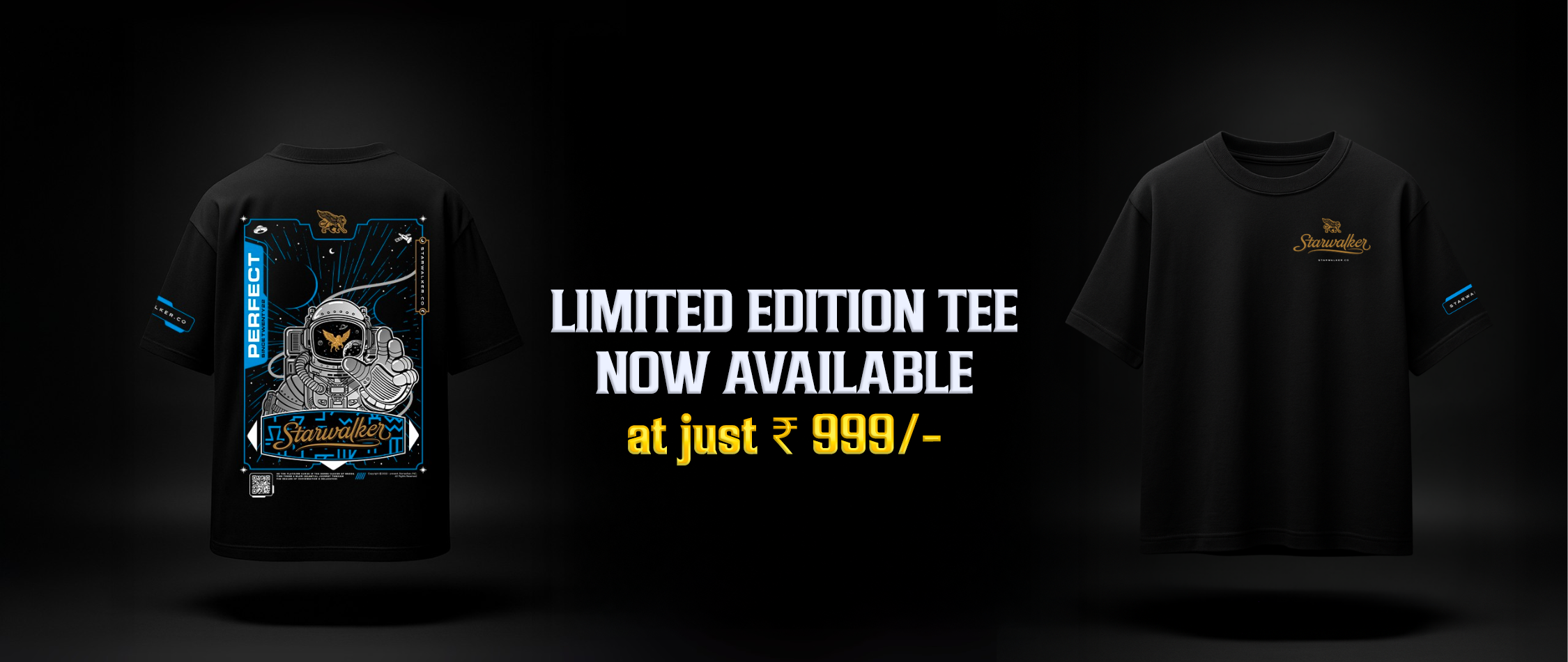 It's not just a Tee, it’s a statement. Featuring a bold astronaut graphic with that cosmic edge, it’s the kind of piece that's sleek, striking, and undeniably Starwalker.