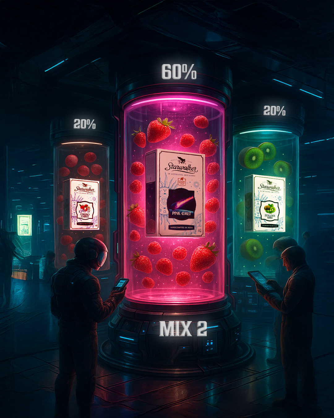 The 60% Pink Comet gives fruity taste, 20% Zealous Kiwi brings a tangy, tropical note, and 20% Eskimo Lychee adds a crisp, sweet finish that makes every puff feel everlasting.